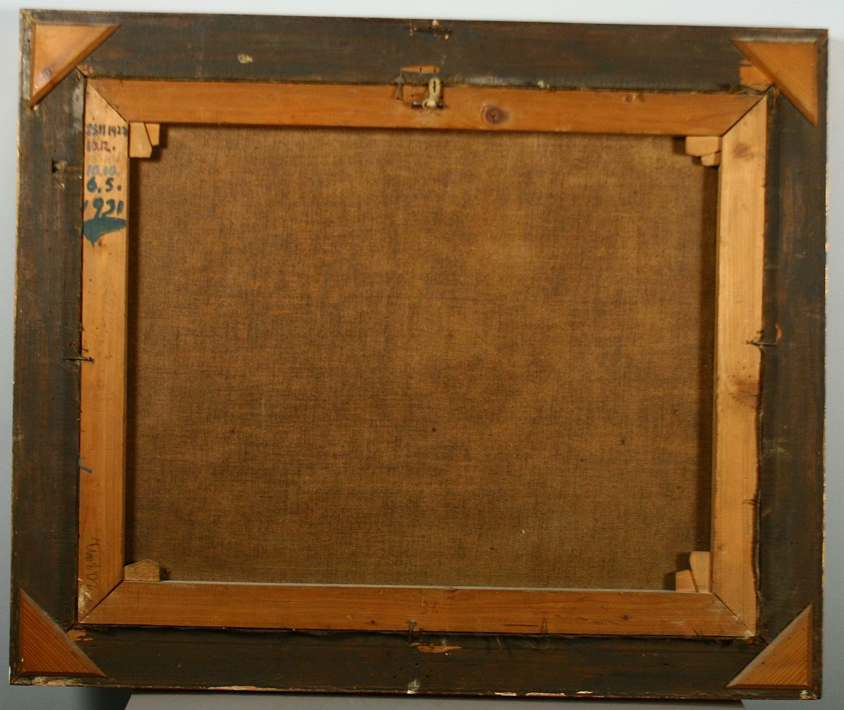 legionáři nastupující do vlaku v zasněžené krajině Zakarpatské Rusi, olej na plátně, ve výřezu 58,5 x 73,5 cm s rámem 76 x 91 cm, podepsáno vpravo dole J. Vlček, na zadní straně napínacího rámu je zaznamenáno několik dat,rámováno v původním částečně poškozeném rámu