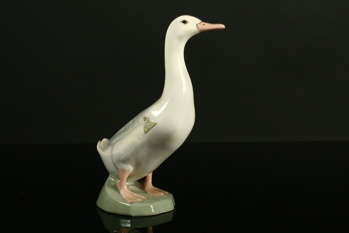 soška husy, malovaný bílý porcelán, neznačený produkce Royal DUX, 17,5 cm