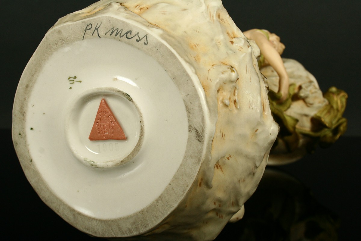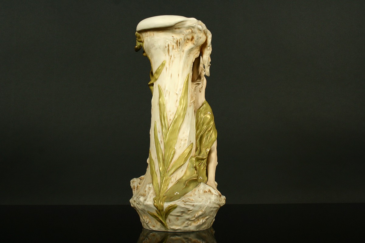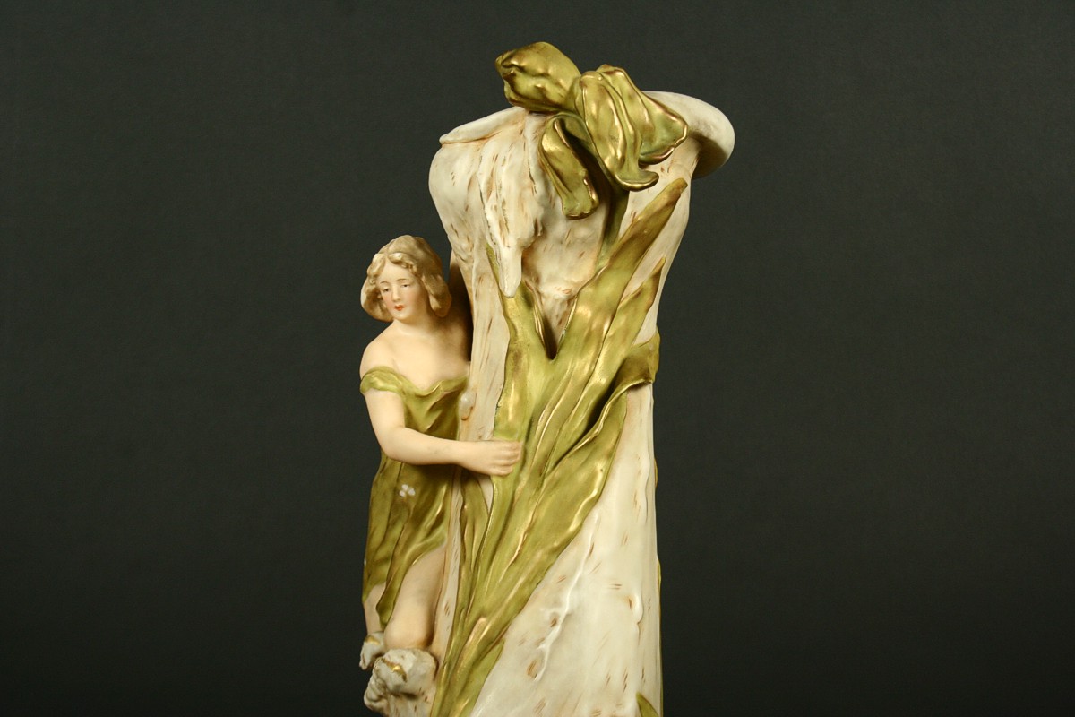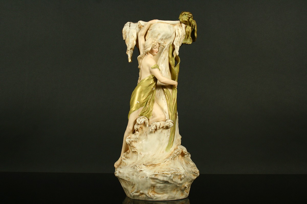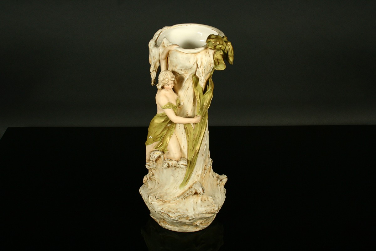 velká figurální váza, porcelán bílý malovaný v tělových barvách, částečně zlacený, značeno tištěnou a tlačenou značkou E ve velkém trojúhelníku Royal Dux Duchcov, 41 cm