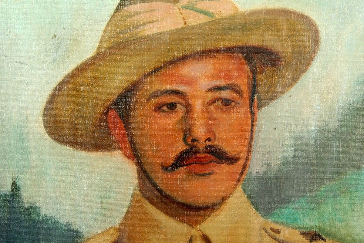 portrét mladého vojáka s kloboukem, olej na plátně 31 x 23 cm s rámem 45 x 37 cm, autor Rudolf Vácha, podepsáno na zadní straně rukou autora R. VÁCHA PARIS 1917, pochází z významné náchodské zbírky, rámováno pod sklem