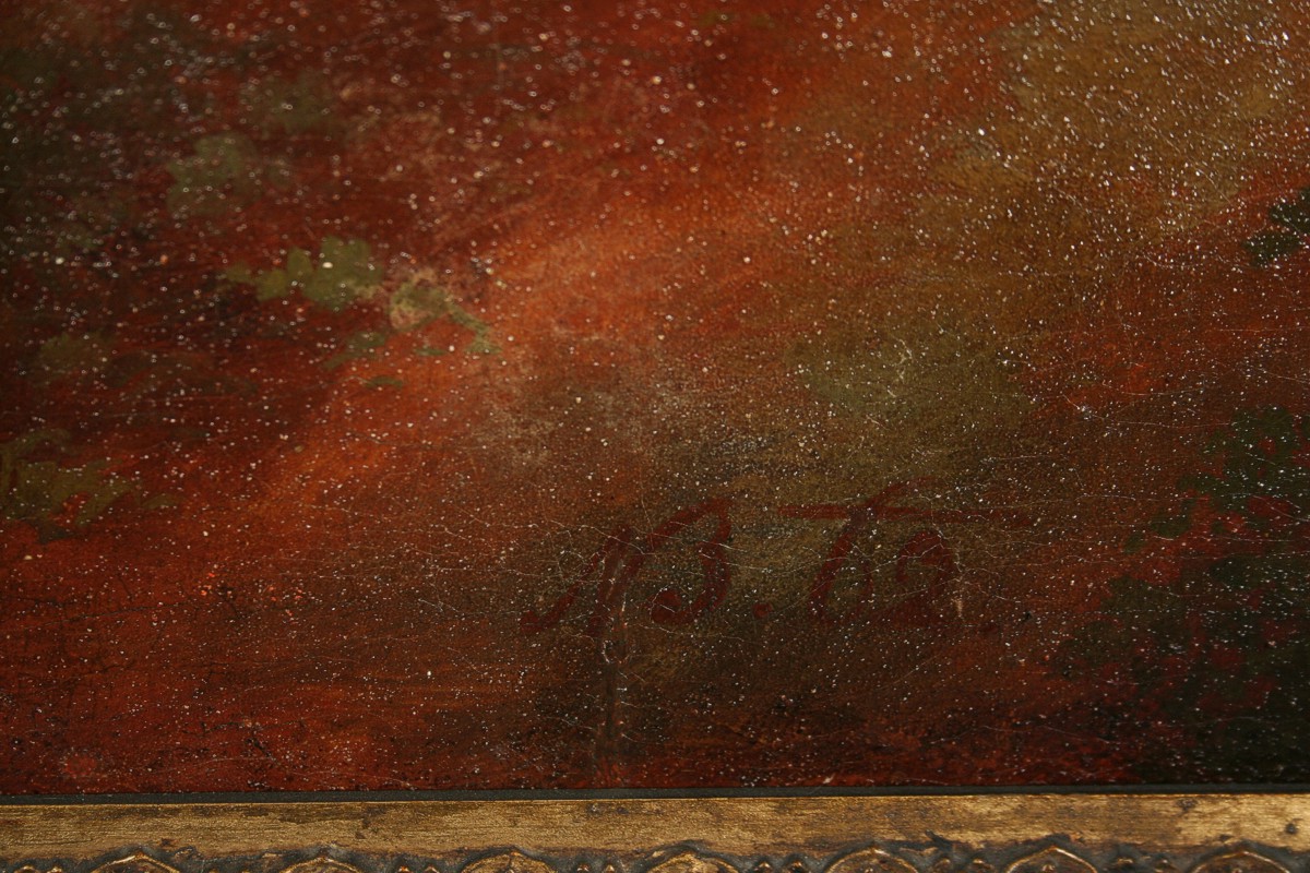 dílo je podepsáno, ale dle našeho pohledu je podpis autora nečitelný a nedokážeme s jistotou autorství určit, můžeme uvádět autora, který se podpisu a stylu malby podobá, ale nikoli se záměrem toto dílo za jeho vydávat