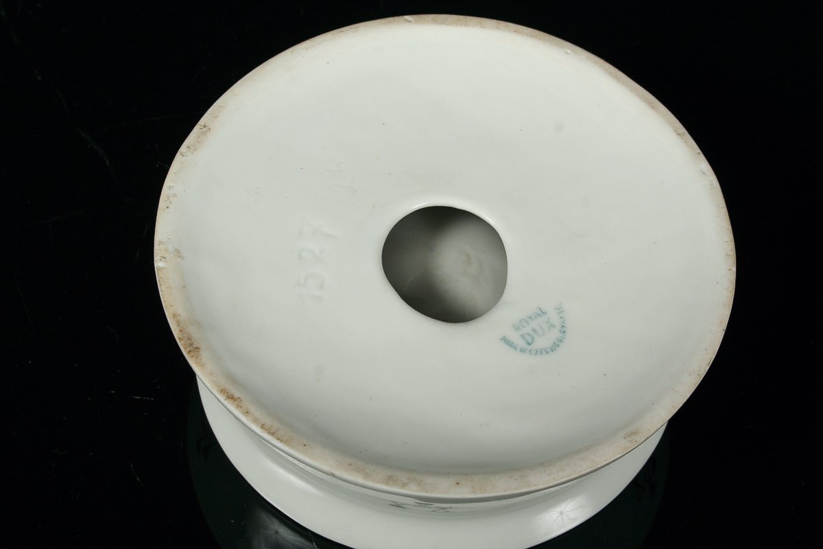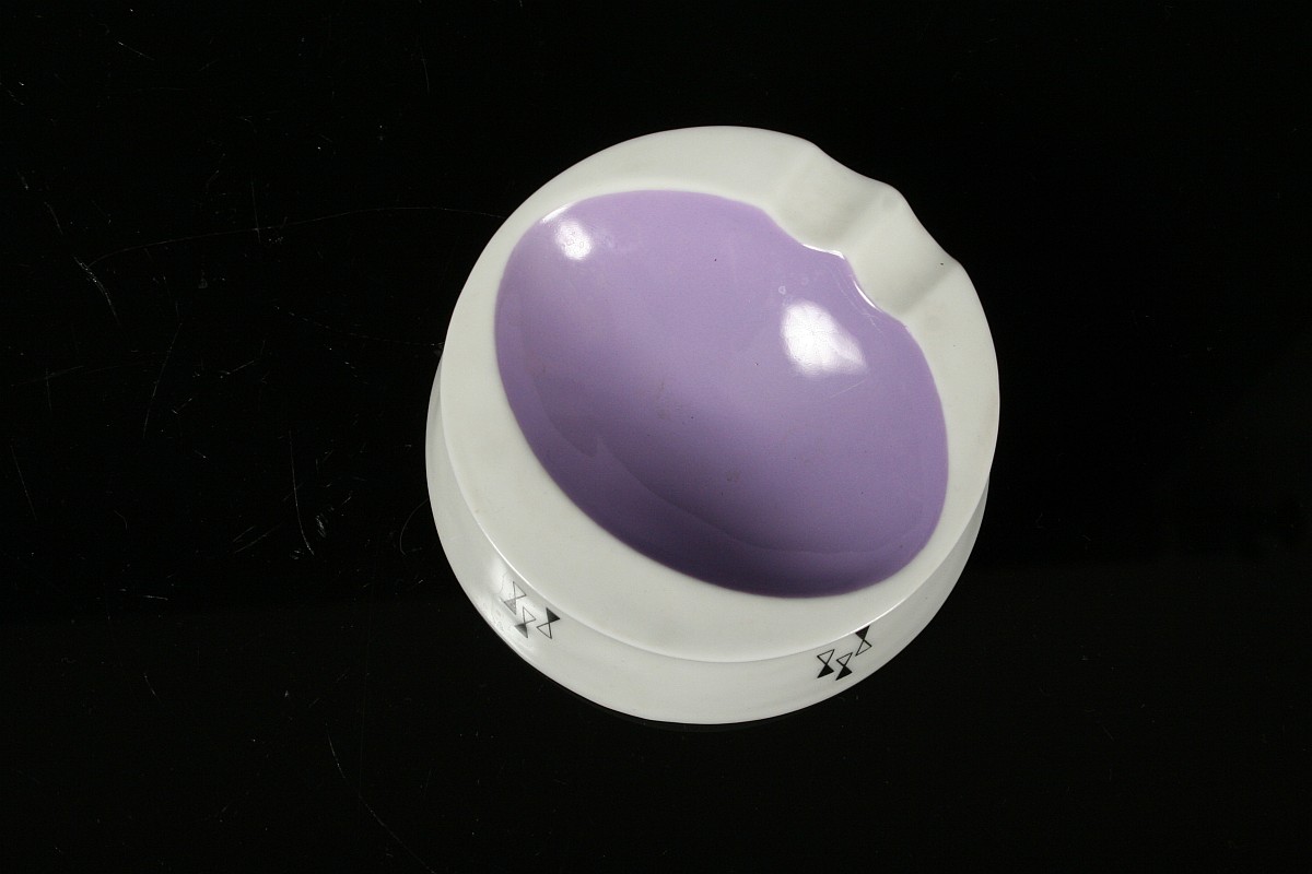 stylizovaný porcelánový popelníček, autor návrhu Jaroslav Ježek, značeno starou tištěnou značkou Royal DUX Duchcov, 60 - 70. léta 20. století, 10,5 x 4 cm