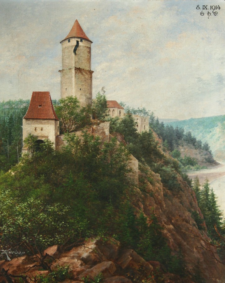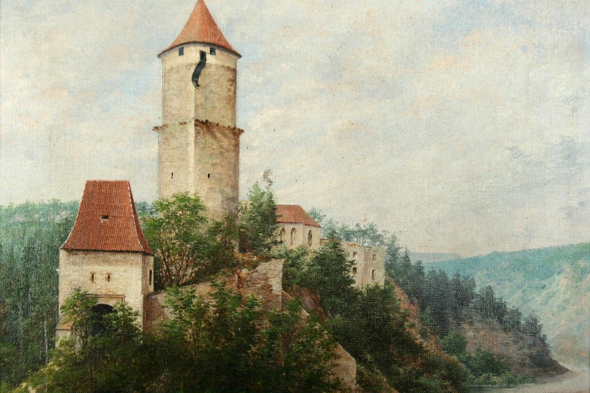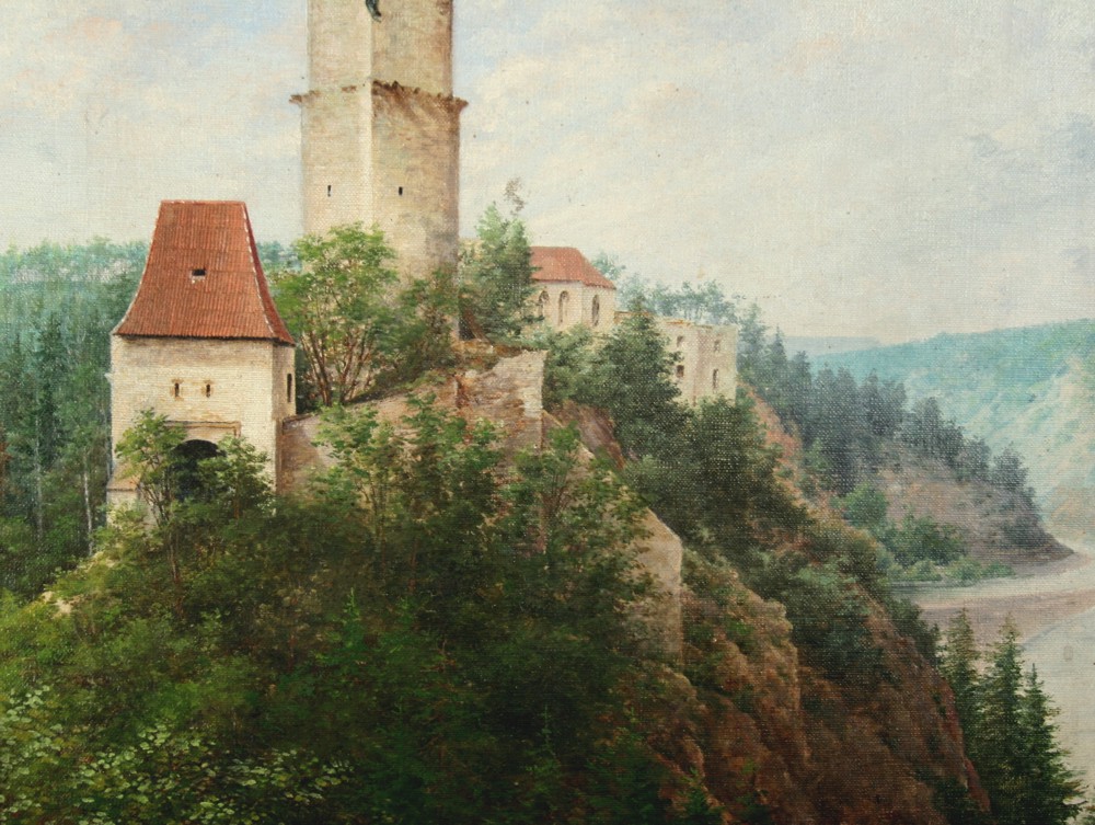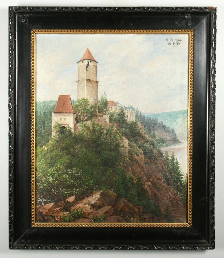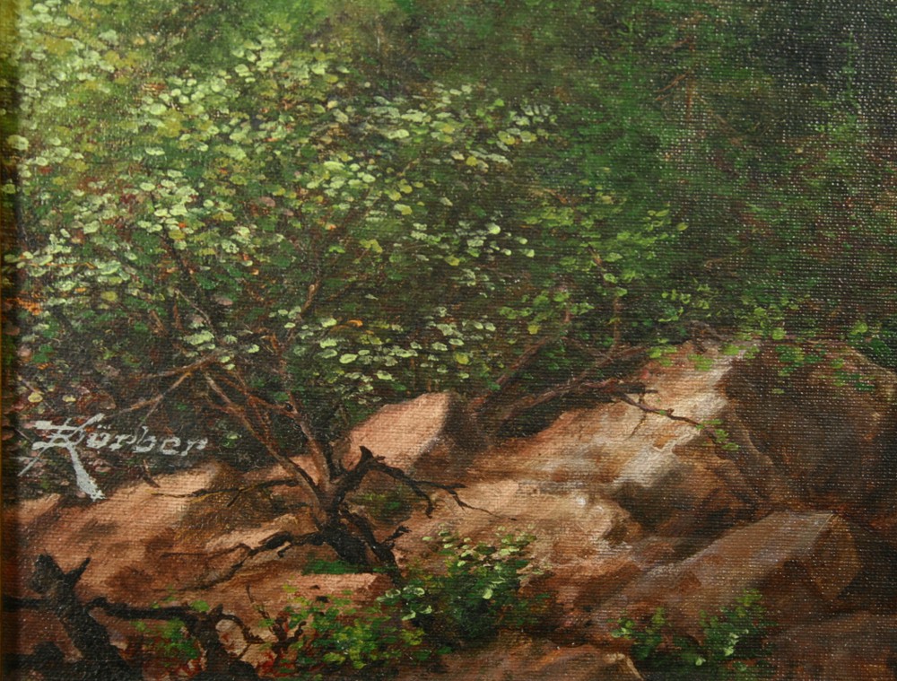 Olej na plátně, nanutém na vypínacím dřevěném rámu s klínky, ve výřezu 49 x 40 cm s rámem 62,5 x 53 cm, autor Pavel Korber, podepsáno vlevo dole P Korber, rámováno v původním rámu.