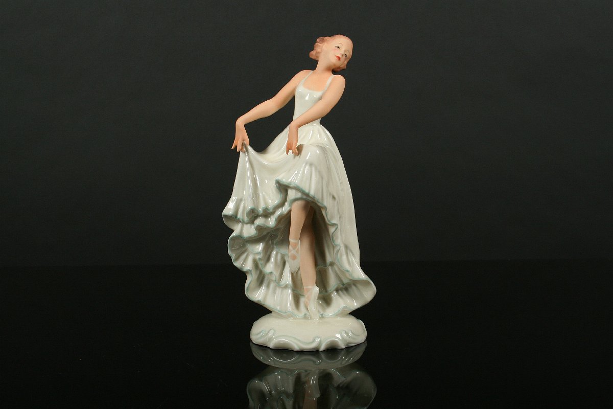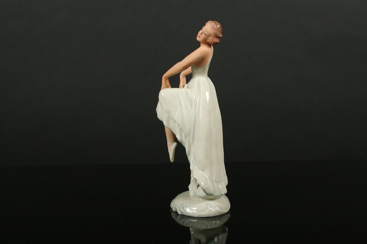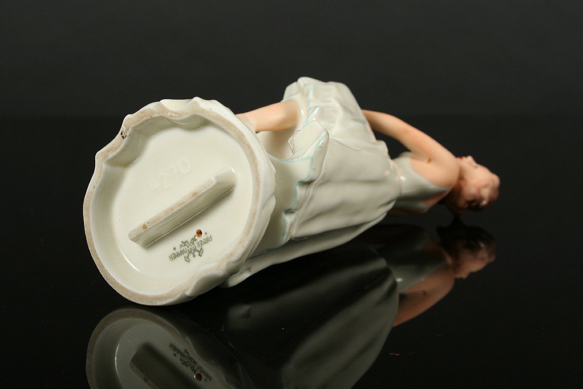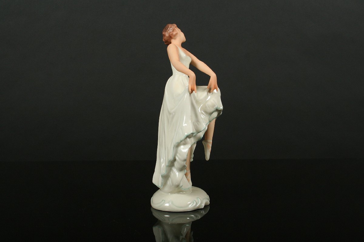 elegantní tanečnice art deco, býlý porcelám malovaný v tělové barvě, na dně značná tištěnou značkou Pirkenhammer, 19,5 cm