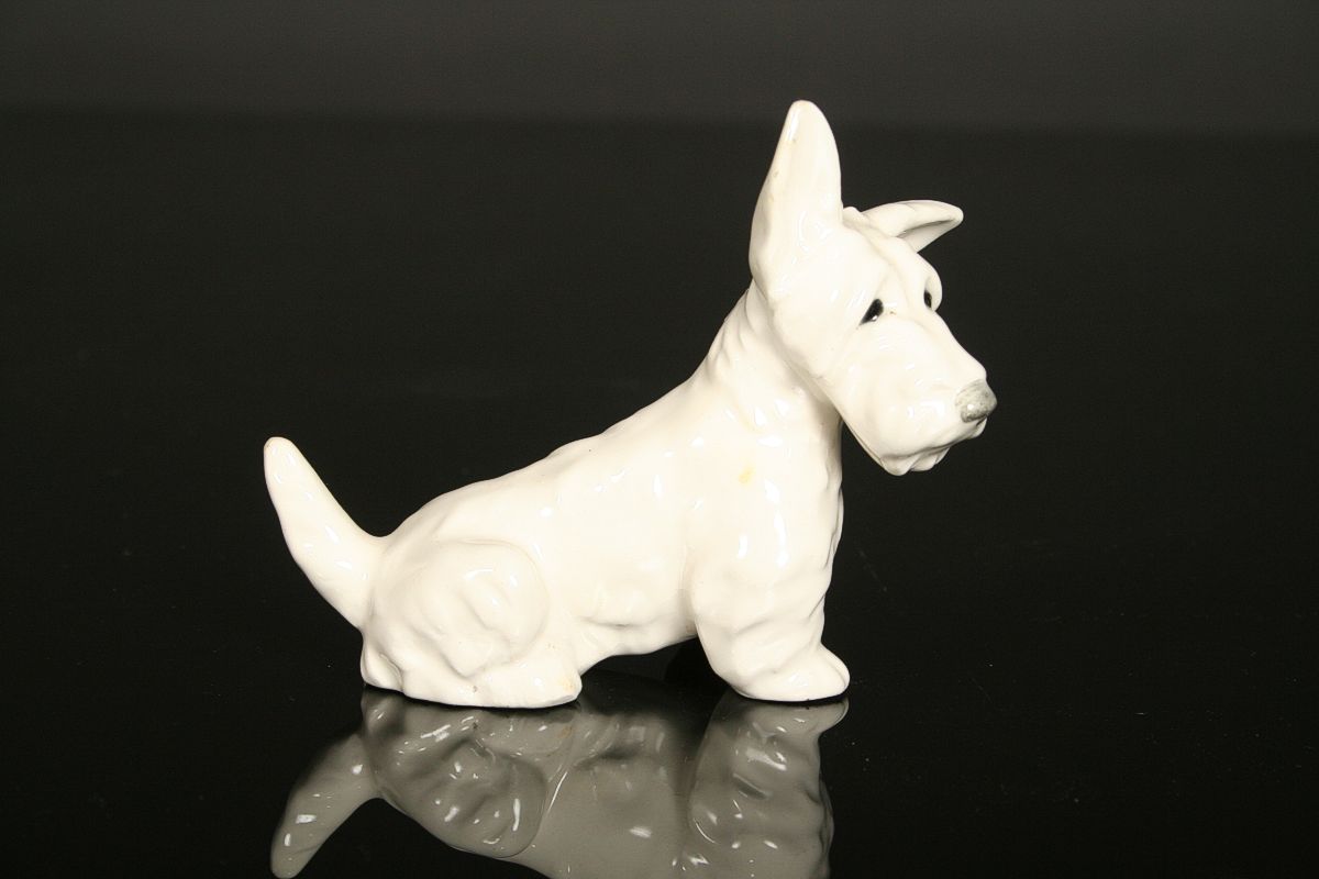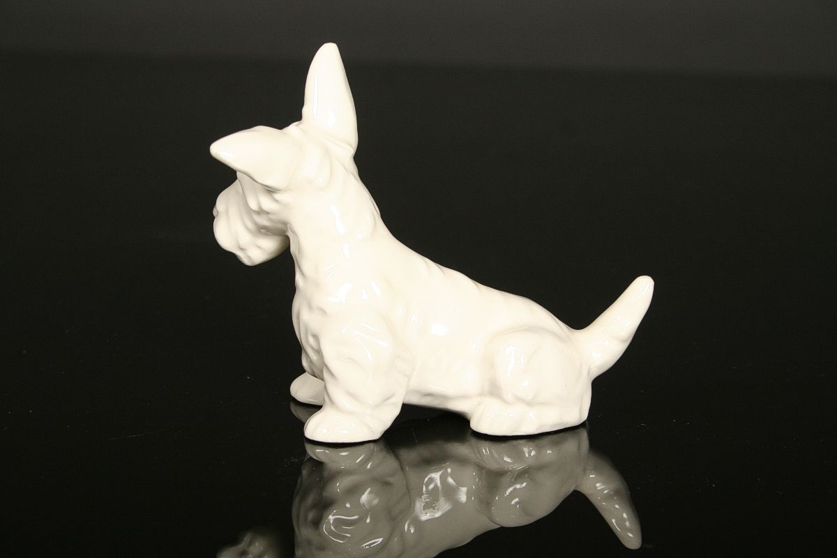 soška psíka, malovaná a glasovaná keramika ve stylu art deco, značeno KERAMOS Wien, 9,5 x 8 cm