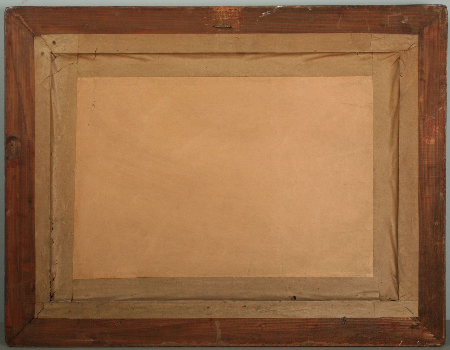 obraz letní krajiny patrně z Vysočiny s vodou a chloupkami, olej na plátně lepeném na kartonu, 35 x 50 cm s rámem 51 x 66 cm, autor Cína Jelínek, podepsáno vpravo dole Cína - Jelínek 32, rámováno v původním rámu