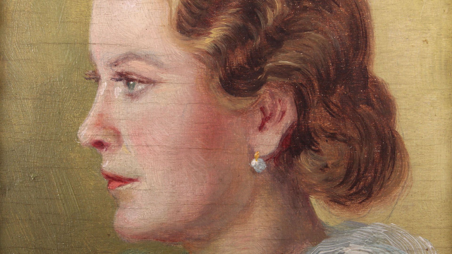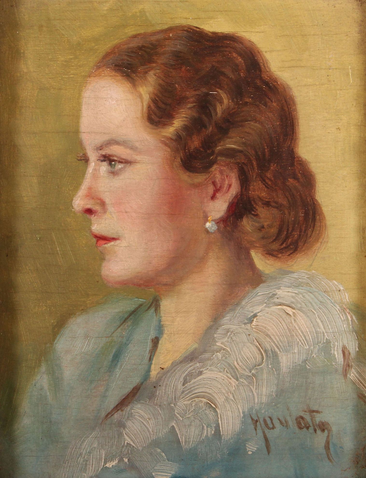 portrét dívky, olej na dřevěné desce ( překližce) 15 x 13 cm s rámem 35 x 32 cm, autor Karel Havlata, podepsáno vpravo dole Havlata, rámováno v původním zdobeném rámu