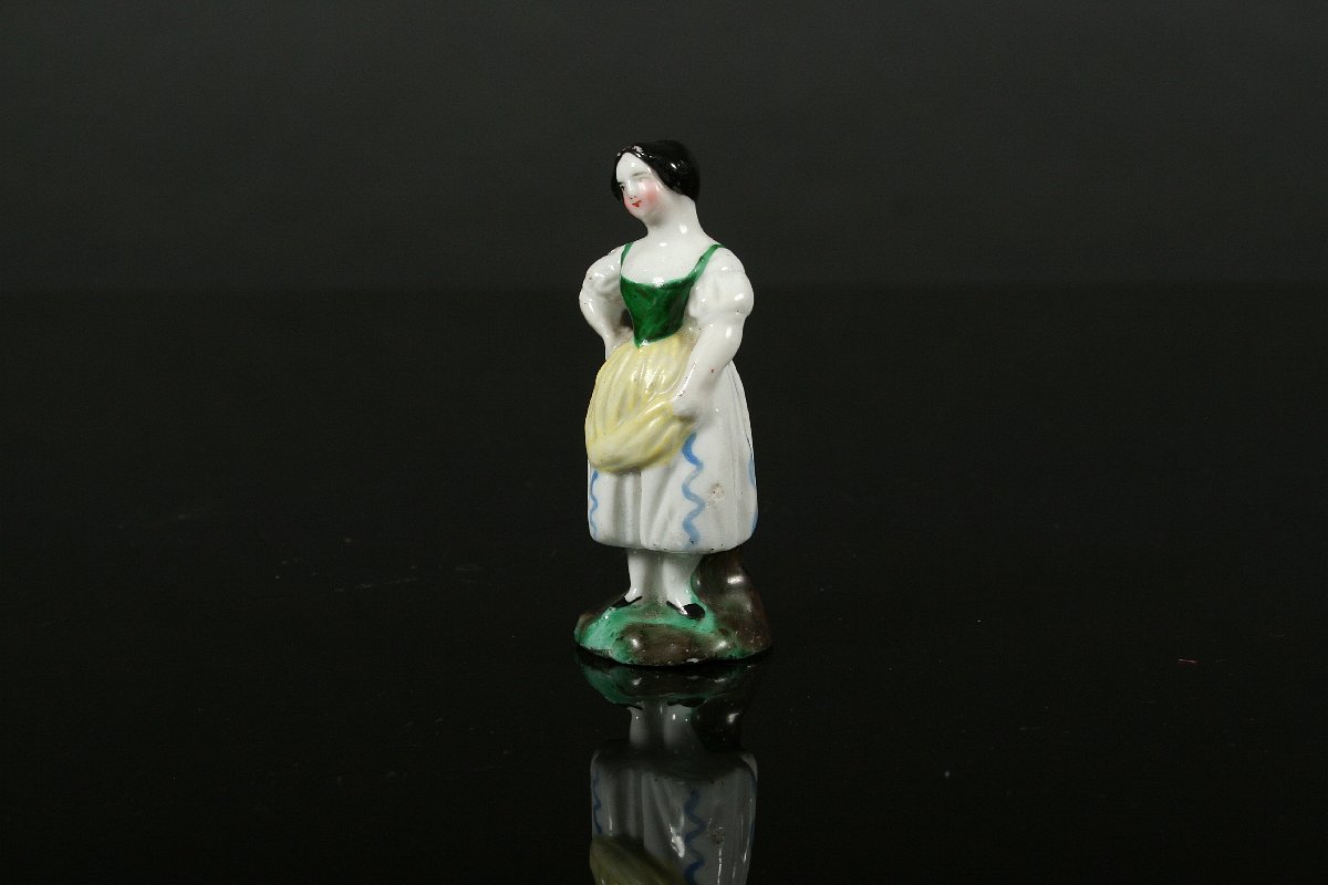 starožitná porcelánová soška selky, bílý porcelán malovaný, neznačeno z 19. století, 8 cm