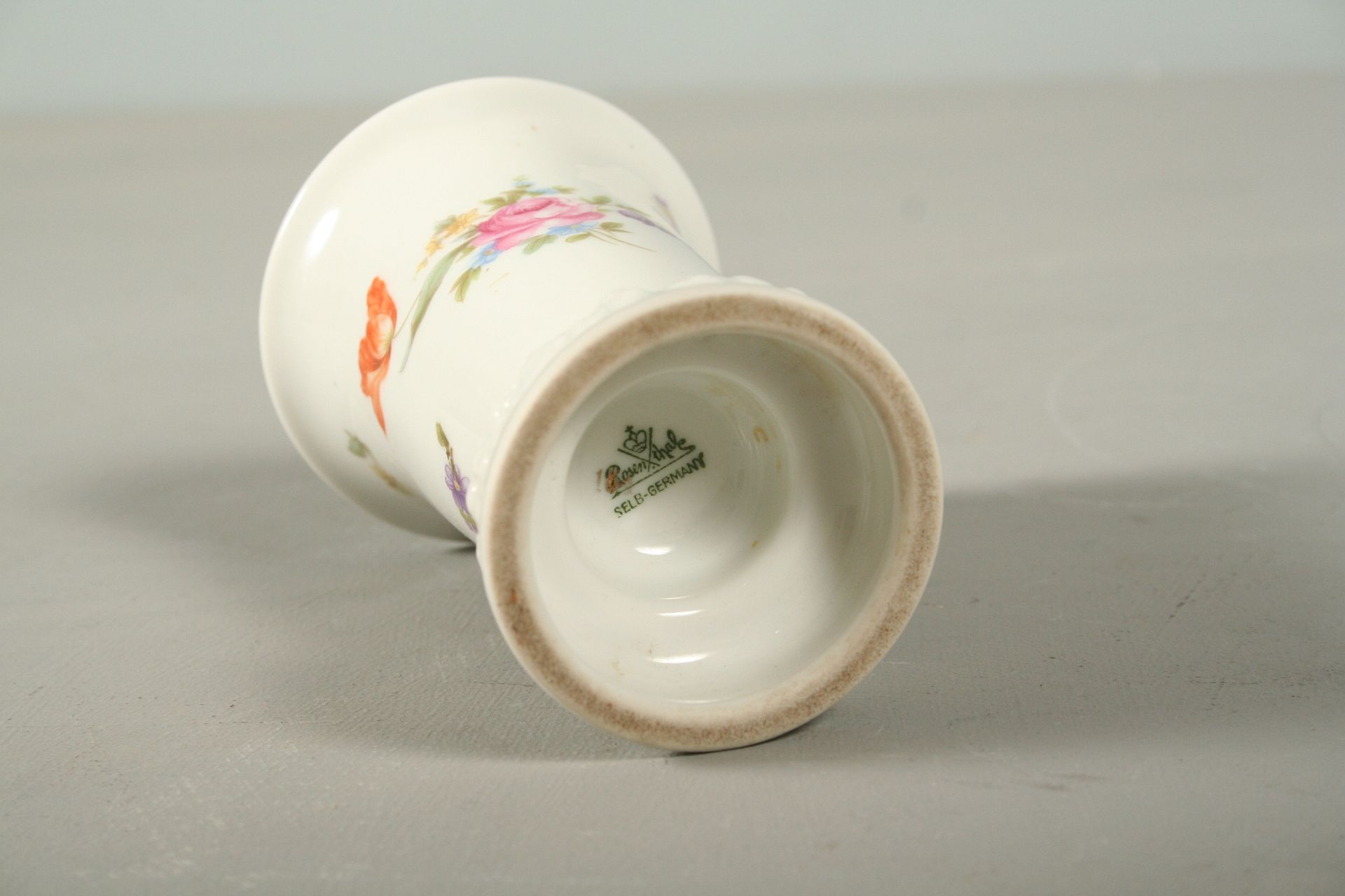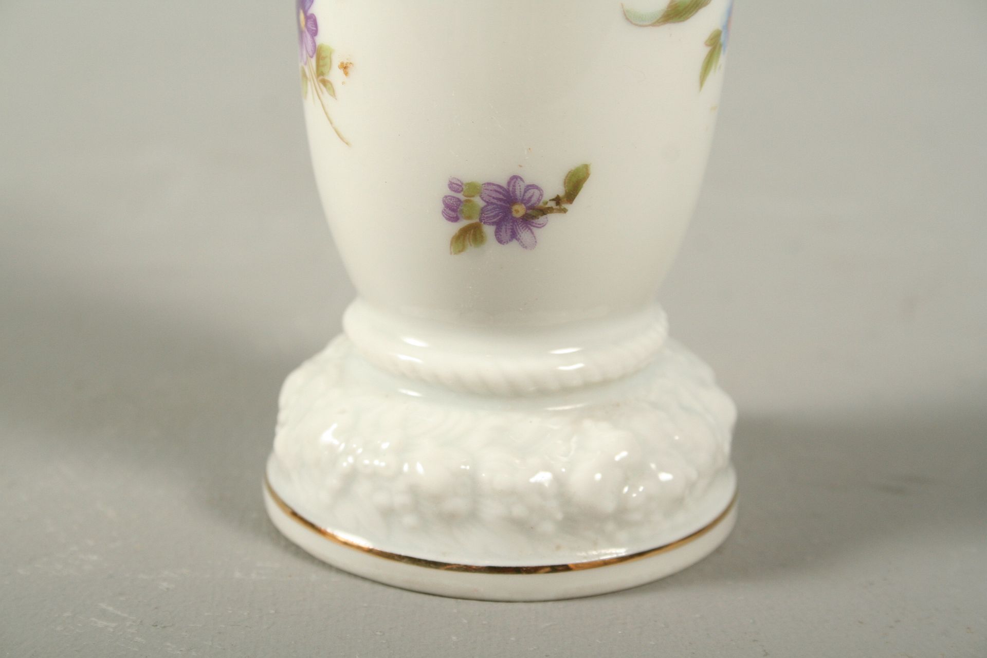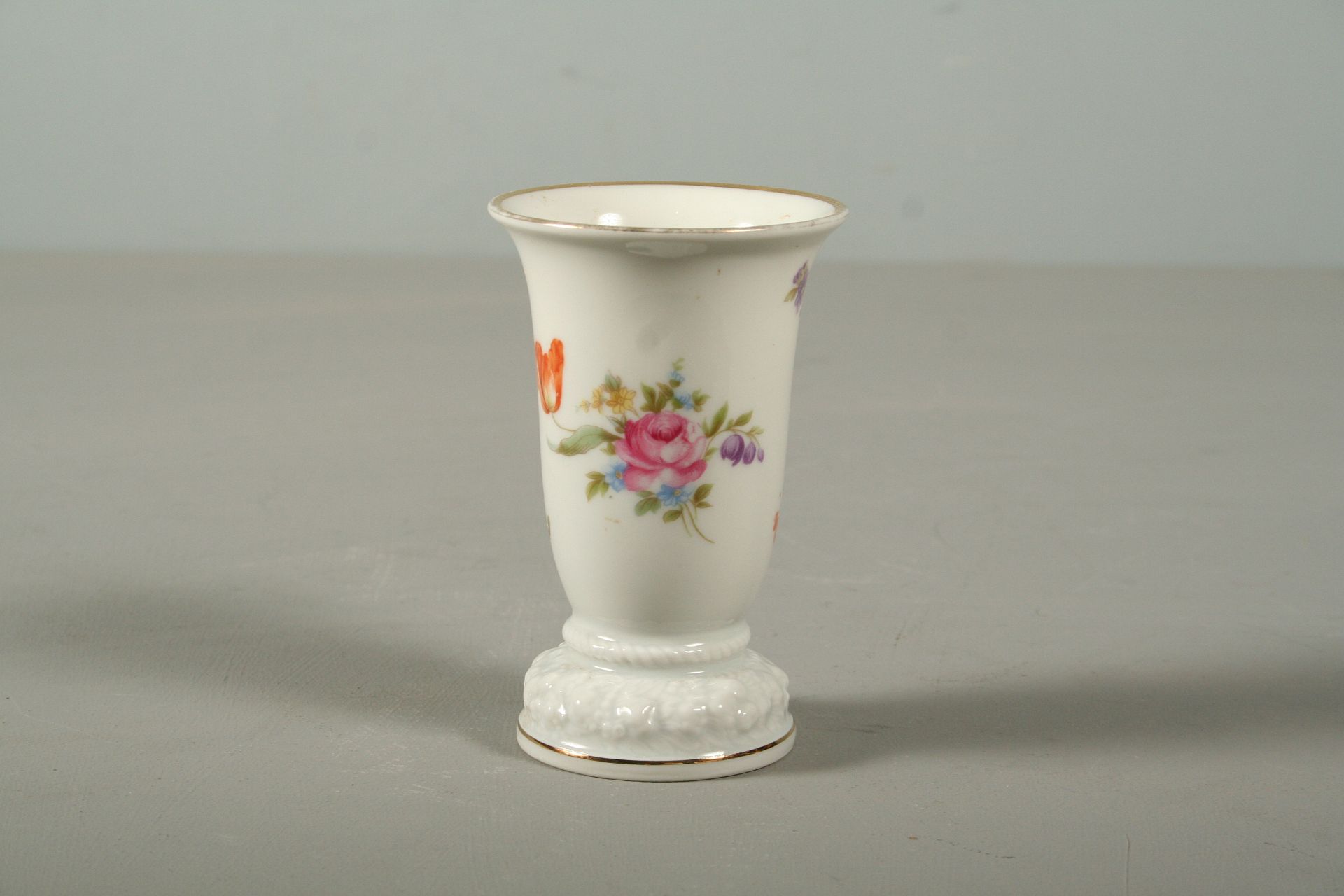 luxusní vázička s květy, bílý glasovaný porcelán, dekorovaný na podstavě plastickým reliéfem se zlacenými linkami, značeno na dně tištěnou značkou Rosenthal, 1. polovina 20. století, 10 cm