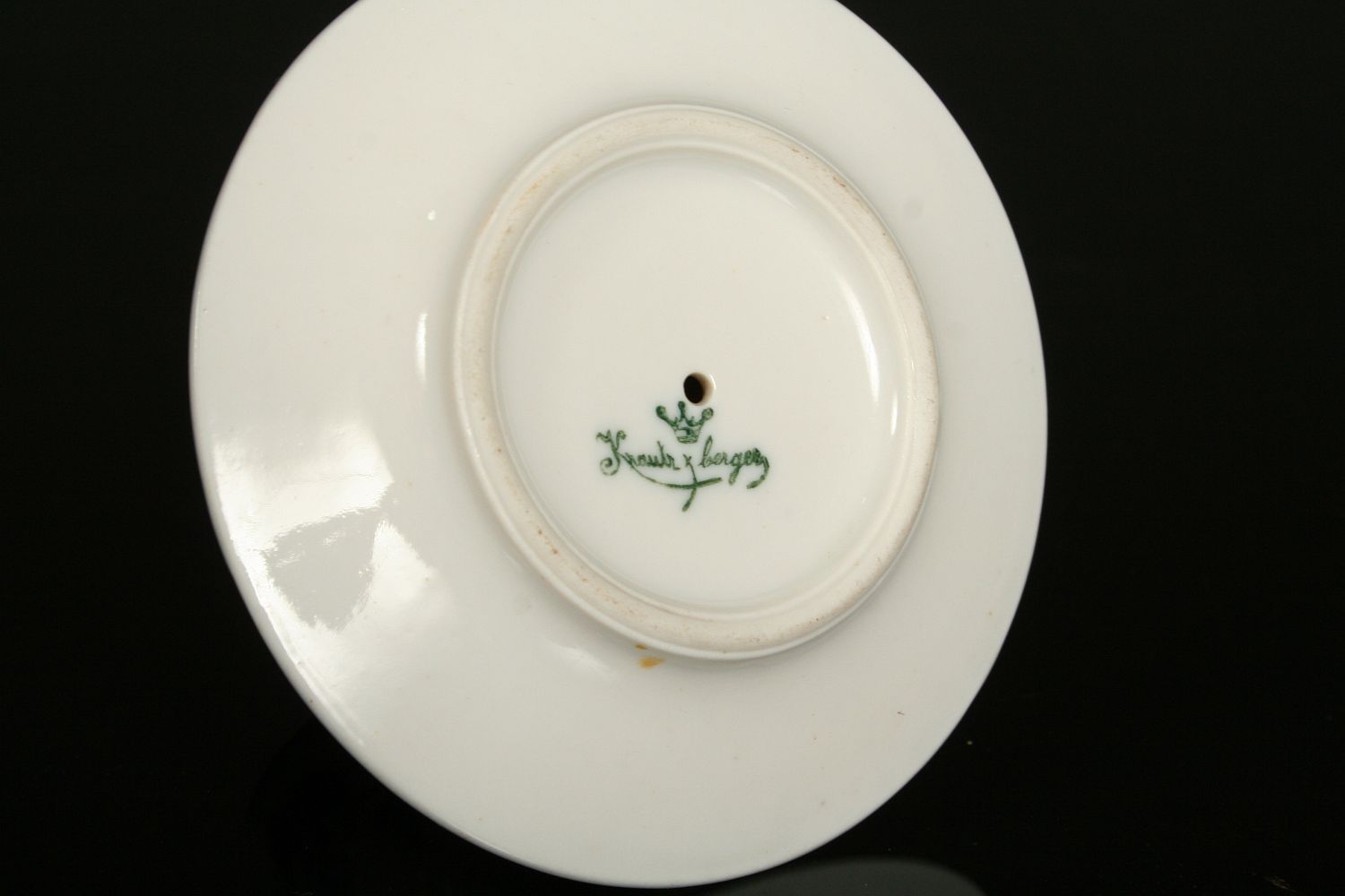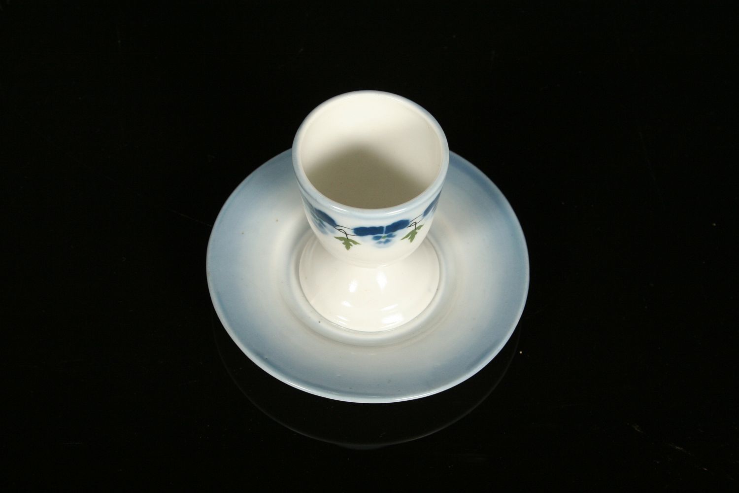stojánek na vajíčko zdobený rostlinným motivem pastelovými barvami pod glazurou, porcelán, značený Krautzberger Teplitz, 7,5 x 11 cm